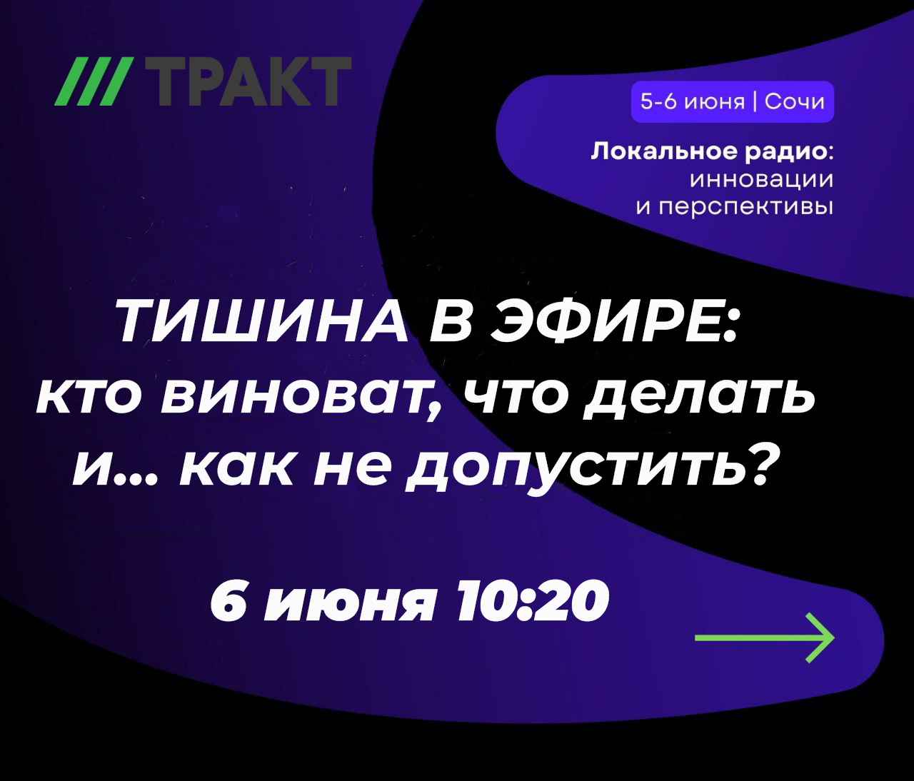 Ждём вас на нашей презентации в конгресс-холл Pullman Sochi Centre в Сочи 6 июня в 10:20. Вы сможете узнать об эффективных стратегиях, чтобы ваша радиостанция звучала всегда. Не дайте тишине ни шанса!